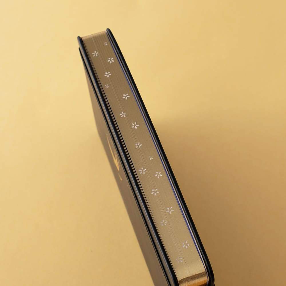 Inspired by the heavenly Moonflower that blooms only at night; our Tsuki MoonFlower Bullet Journal brings together smooth black vegan leather + beautiful floral etched metallic gold page edges to this luxury limited edition design. This latest addition to our collection of Tsuki 160GSM dot grid notebooks brings a never before seen aesthetic opulence to your bullet journal experience and is now part of our new Moonflower Collection!