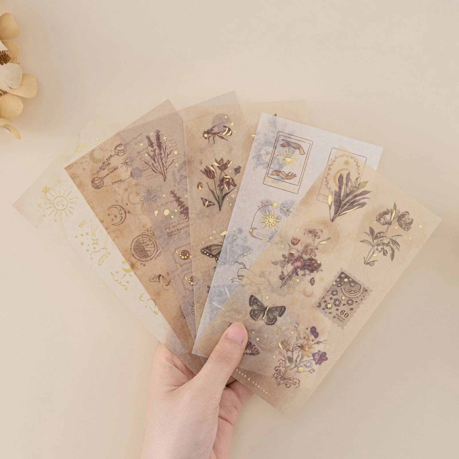 Add a touch of magic + vintage elements to your penpal letters, bullet journals, scrapbooks and junk journals. This Tsuki Moonlit Spells washi sticker set has 6 beautiful sticker sheets featuring gold foil details. Perfect for a witchy aesthetic (8 x 16cm).